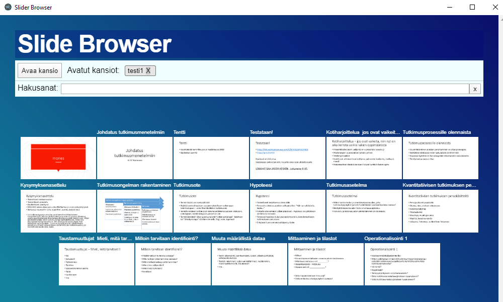 A tool for browsing PowerPoint and PDF-files with the feature to filter pages by text content.